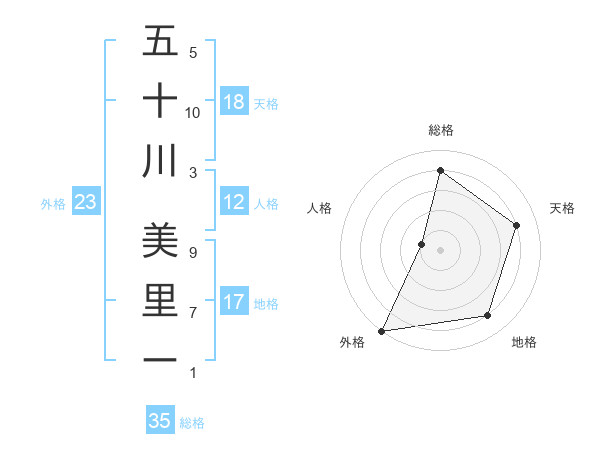 五十川 美里ーさんの総格は35画の4点!