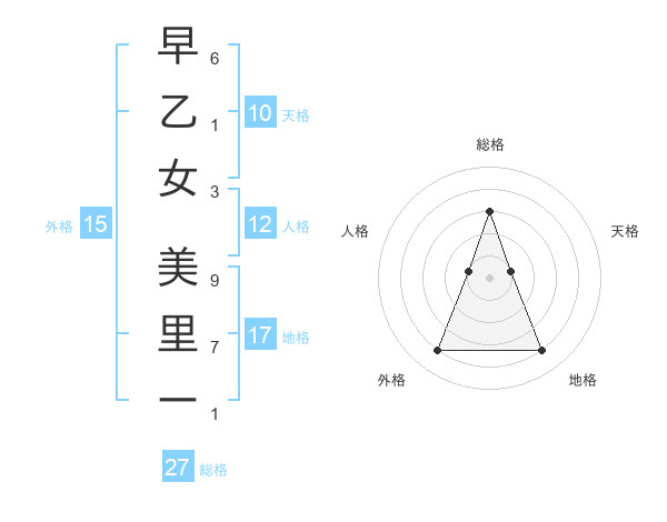 早乙女 美里ーさんを姓名の画数から五運を鑑定