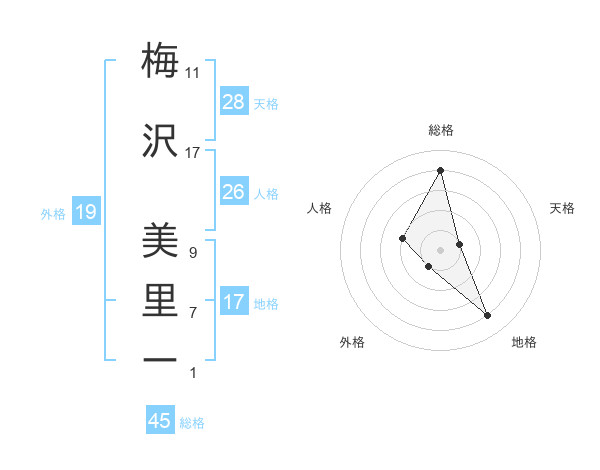 梅沢 美里ーさんの総格は45画の4点!
