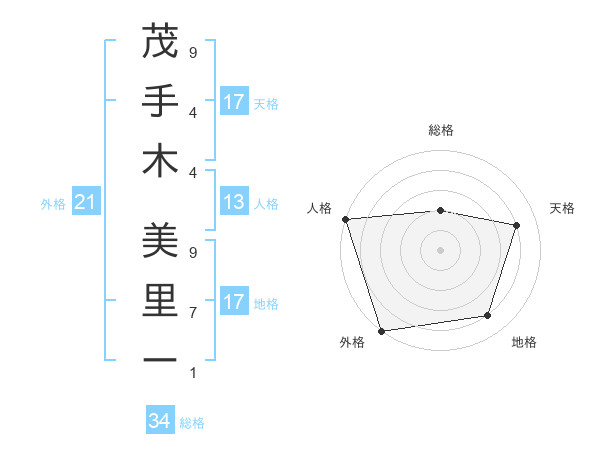 茂手木 美里ーさんを姓名の画数から五運を鑑定