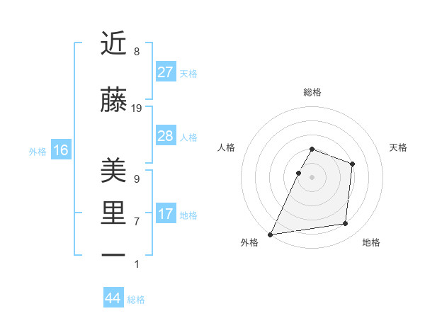 近藤 美里ーさんを姓名の画数から五運を鑑定