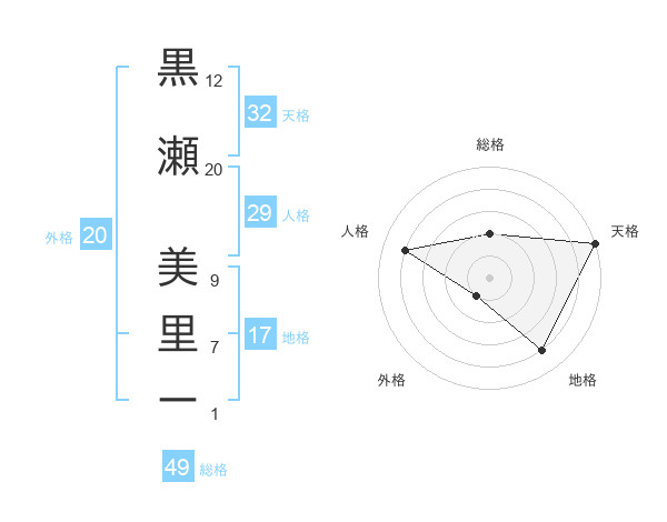 黒瀬 美里ーさんの総格は49画の2点!