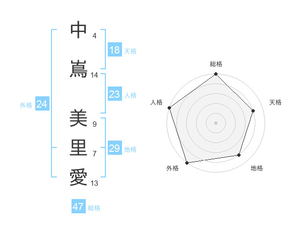 中嶌 美里愛さんを姓名の画数から五運を鑑定