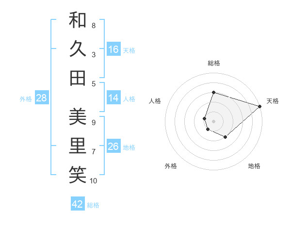 和久田 美里笑さんの天格は16画の5点!