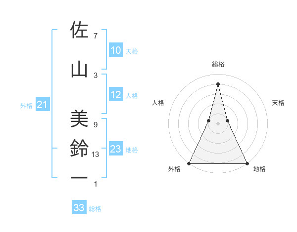 佐山 美鈴ーさんの地格は23画の5点!