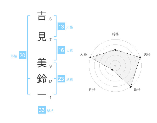 吉見 美鈴ーさんの天格は13画の5点!