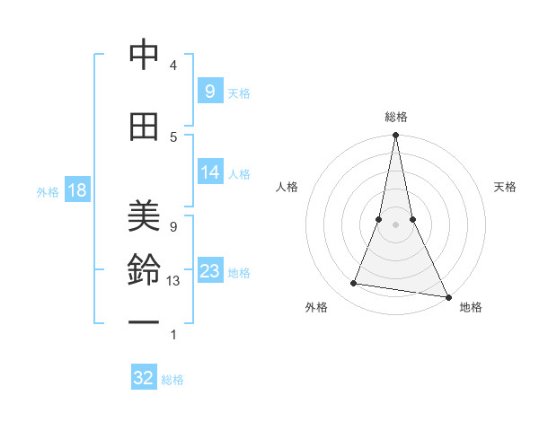 中田 美鈴一さんを姓名の画数から五運を鑑定