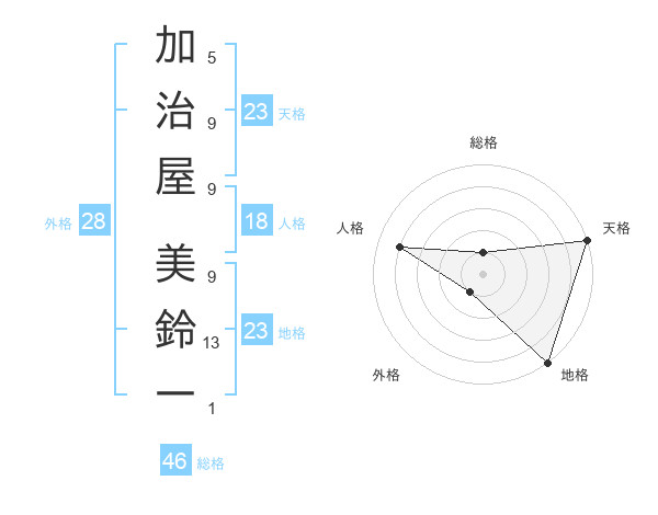 加治屋 美鈴一さんの天格は23画の5点