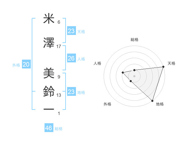 米澤 美鈴一さんを姓名の画数から五運を鑑定