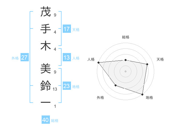 茂手木 美鈴一さんの天格は17画の4点!