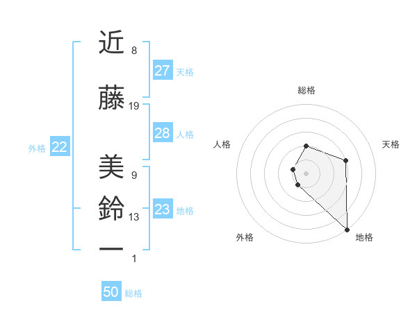 近藤 美鈴一さんの地格は23画の5点!