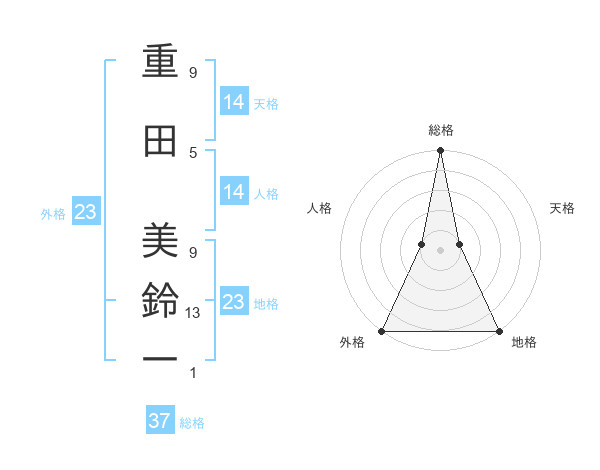 重田 美鈴一さんを姓名の画数から五運を鑑定