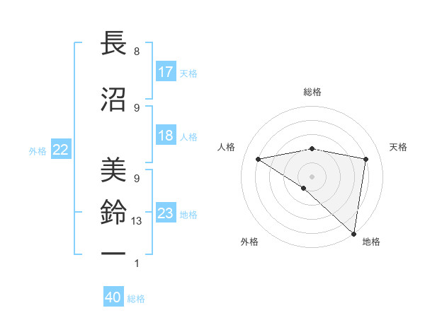 長沼 美鈴一さんを姓名の画数から五運を鑑定
