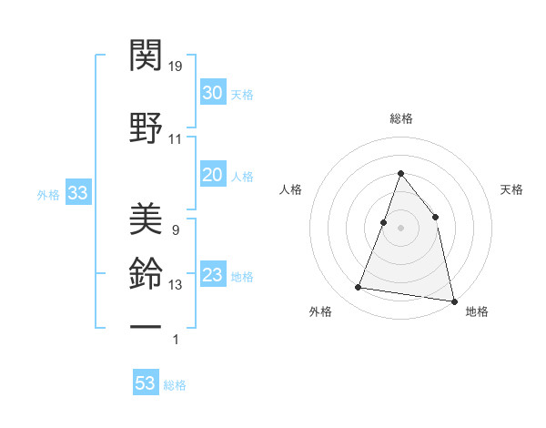 関野 美鈴一さんを姓名の画数から五運を鑑定