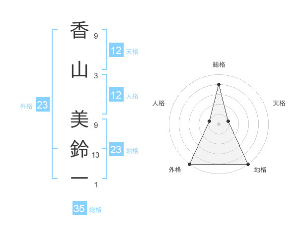 香山 美鈴一さんを姓名の画数から五運を鑑定