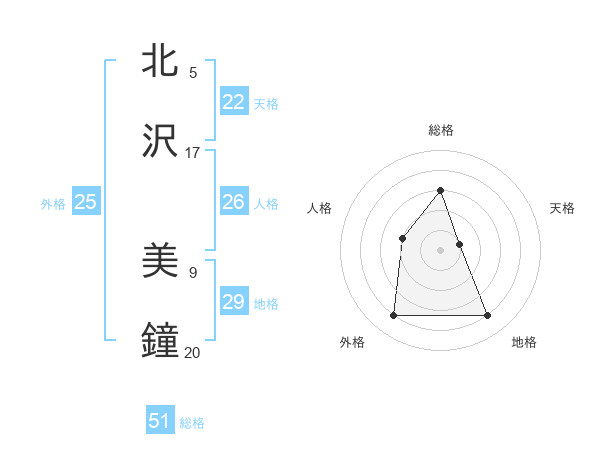 北沢 美鐘さんを姓名の画数から五運を鑑定