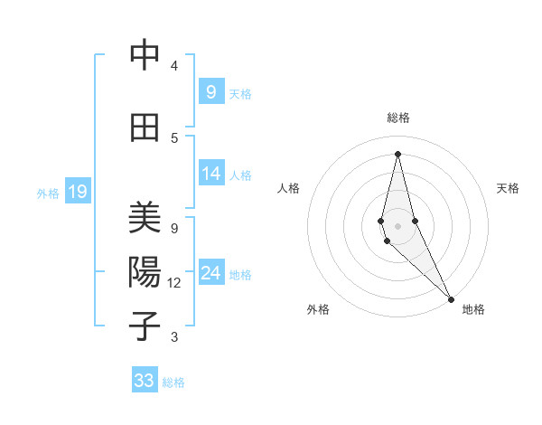 中田 美陽子さんを姓名の画数から五運を鑑定