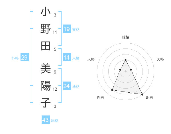 小野田 美陽子さんを姓名の画数から五運を鑑定