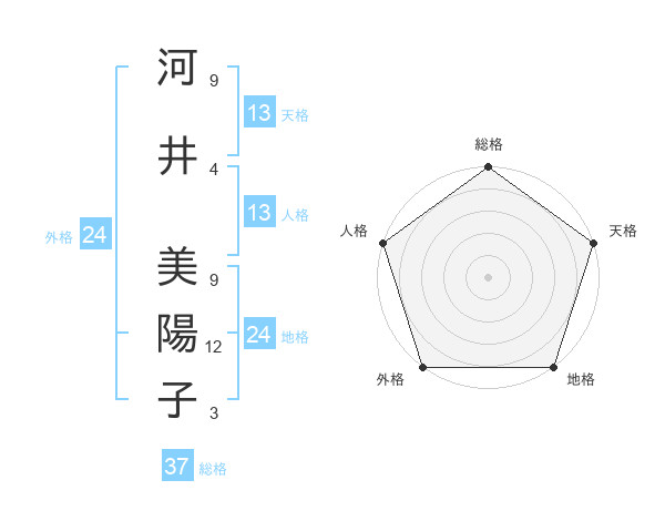 河井 美陽子さんを姓名の画数から五運を鑑定
