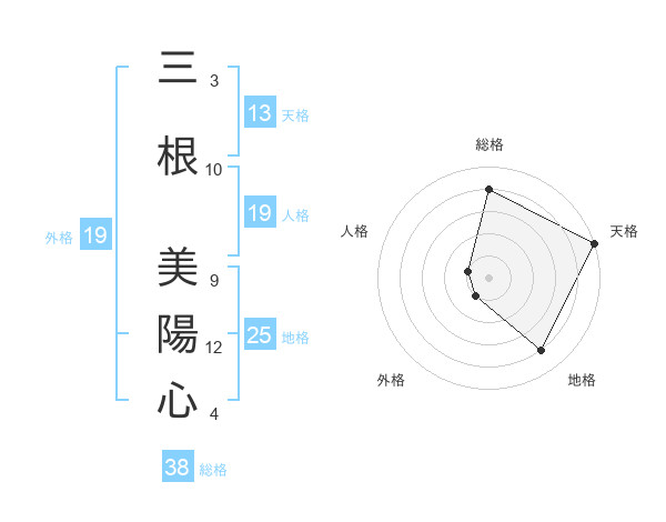 三根 美陽心さんを姓名の画数から五運を鑑定