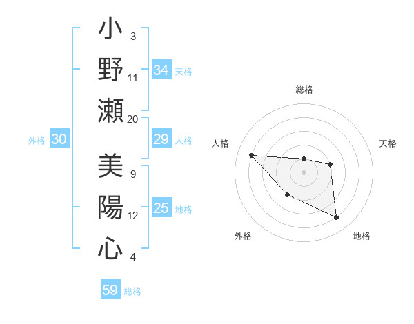 小野瀬 美陽心さんの総格は59画の1点!