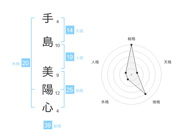 手島 美陽心さんを姓名の画数から五運を鑑定