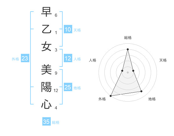 早乙女 美陽心さんの総格は35画の4点!