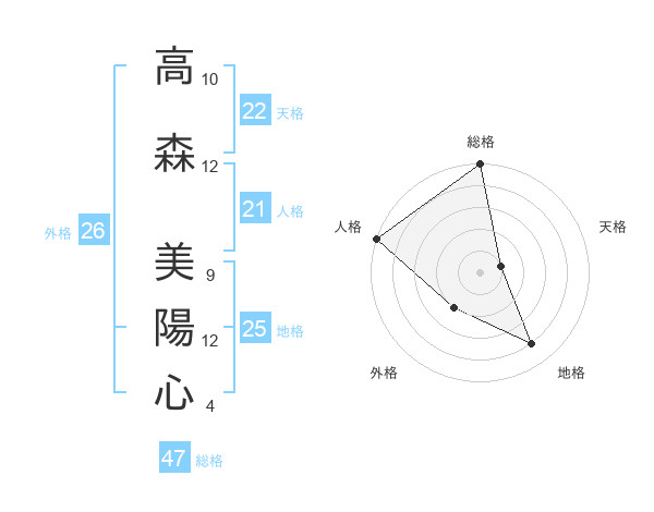高森 美陽心さんの総格は47画の5点