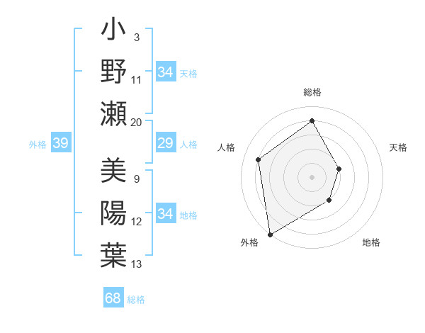 小野瀬 美陽葉さんを姓名の画数から五運を鑑定
