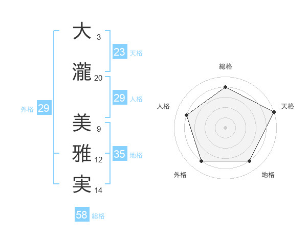 大瀧 美雅実さんを姓名の画数から五運を鑑定