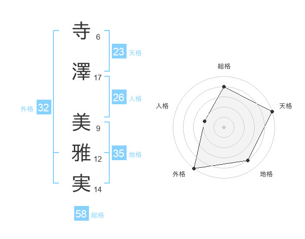 寺澤 美雅実さんの天格は23画の5点!