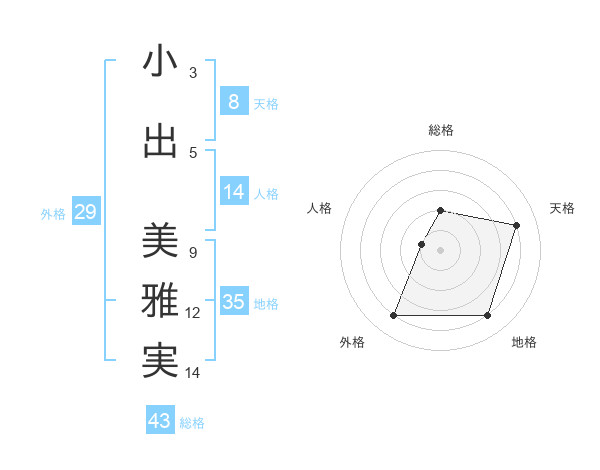小出 美雅実さんの天格は8画の4点!