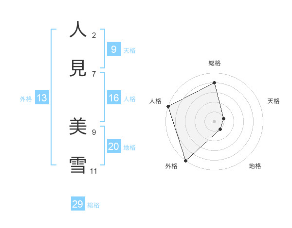 人見 美雪さんの総格は29画の4点!