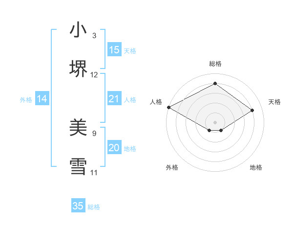 小堺 美雪さんを姓名の画数から五運を鑑定