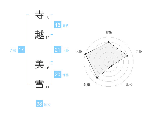 寺越 美雪さんの総格は38画の4点!
