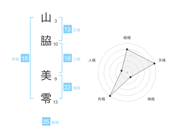 山脇 美零さんの総格は35画の4点!
