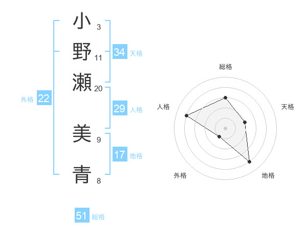 小野瀬 美青さんを姓名の画数から五運を鑑定