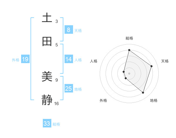 土田 美静さんの総格は33画の4点
