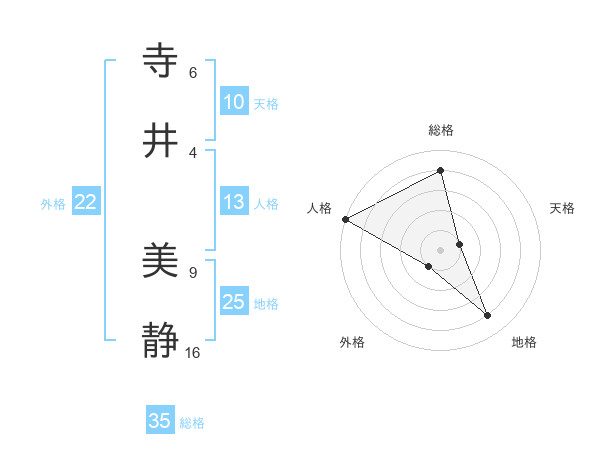 寺井 美静さんの総格は35画の4点!