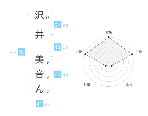 沢井 美音んさんを姓名の画数から五運を鑑定