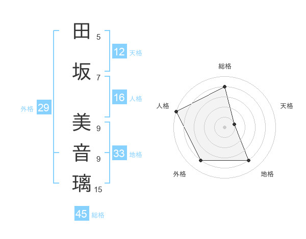 田坂 美音璃さんの地格は33画の4点!