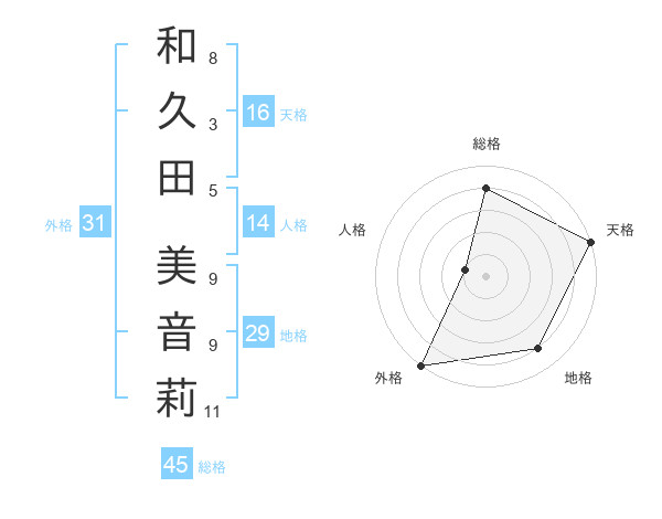 和久田 美音莉さんを姓名の画数から五運を鑑定