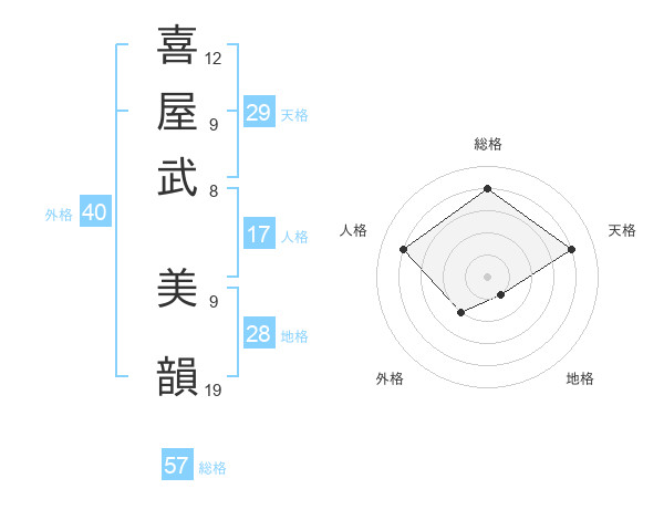 喜屋武 美韻さんを姓名の画数から五運を鑑定
