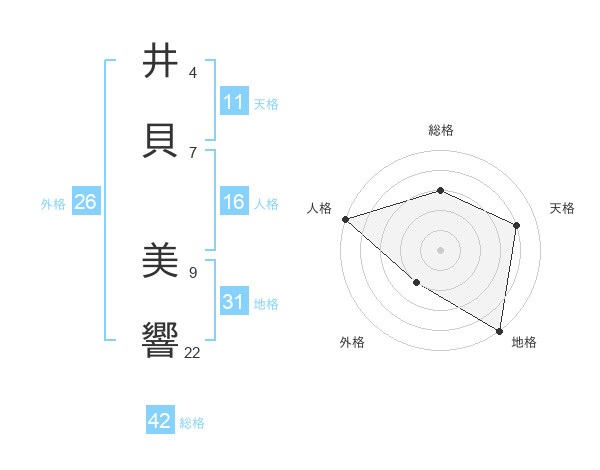 井貝 美響さんの総格は42画の3点!