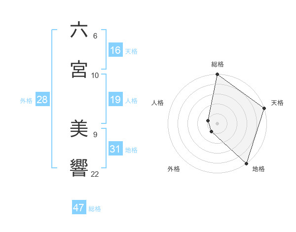 六宮 美響さんの総格は47画の5点!