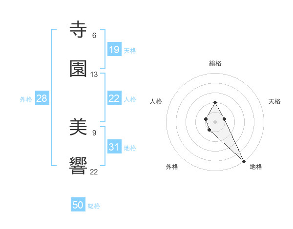 寺園 美響さんの総格は50画の2点!