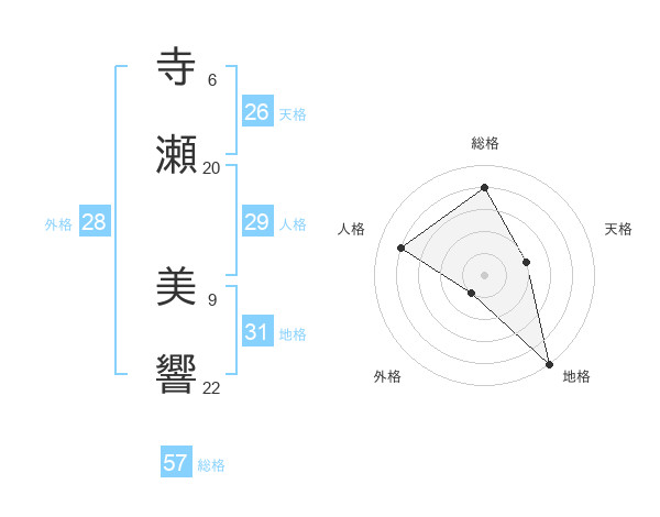 寺瀬 美響さんの総格は57画の4点!