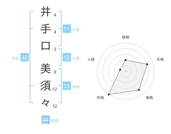 井手口 美須々さんを姓名の画数から五運を鑑定