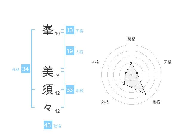 峯 美須々さんの総格は43画の2点!