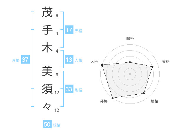 茂手木 美須々さんを姓名の画数から五運を鑑定
